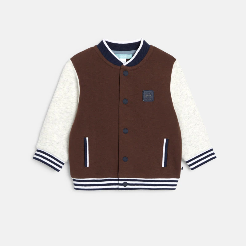 Эта клубная куртка придаст вашему мальчику спортивный стиль! Эта двухцветная модель наделена всеми любимыми нами деталями: у нее забавный рисунок на спине, отделка трикотажной резинкой и застежка на кнопки.