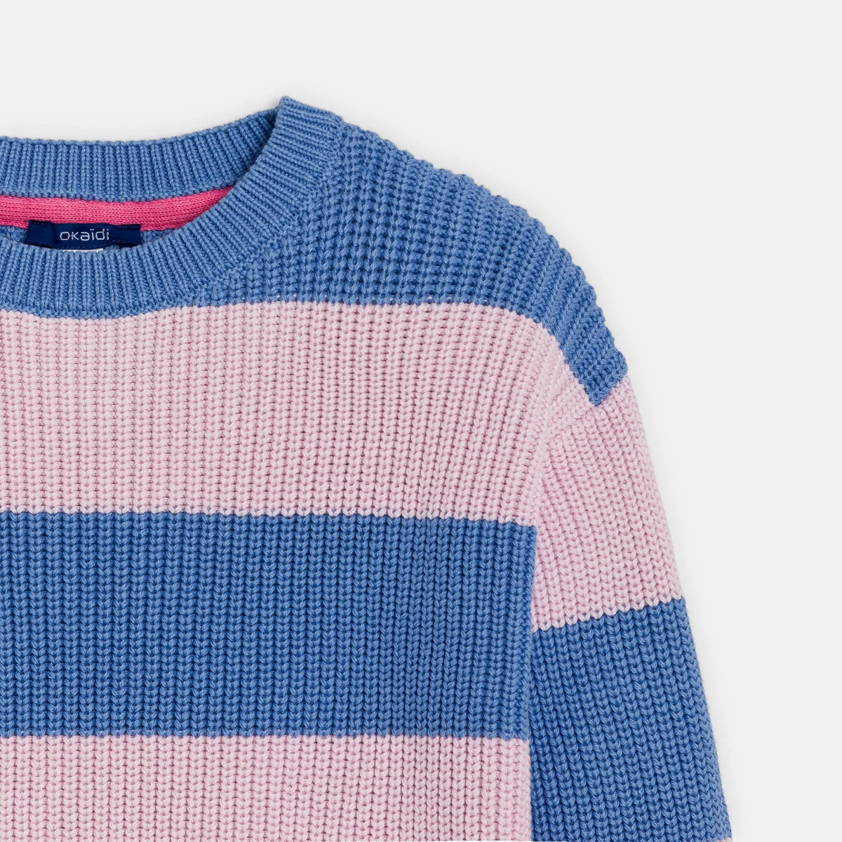 Широкая двухцветная полоска — это графично и создает непринужденный образ! Мягкий и эластичный фанговый трикотаж. Слегка зауженный книзу крой. Круглая горловина. Спущенная пройма. Длинные рукава. Прямой низ. Отделка резинкой по краям.
