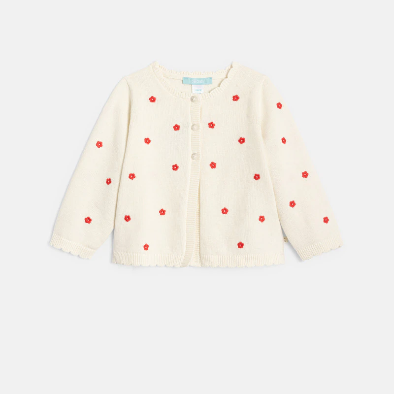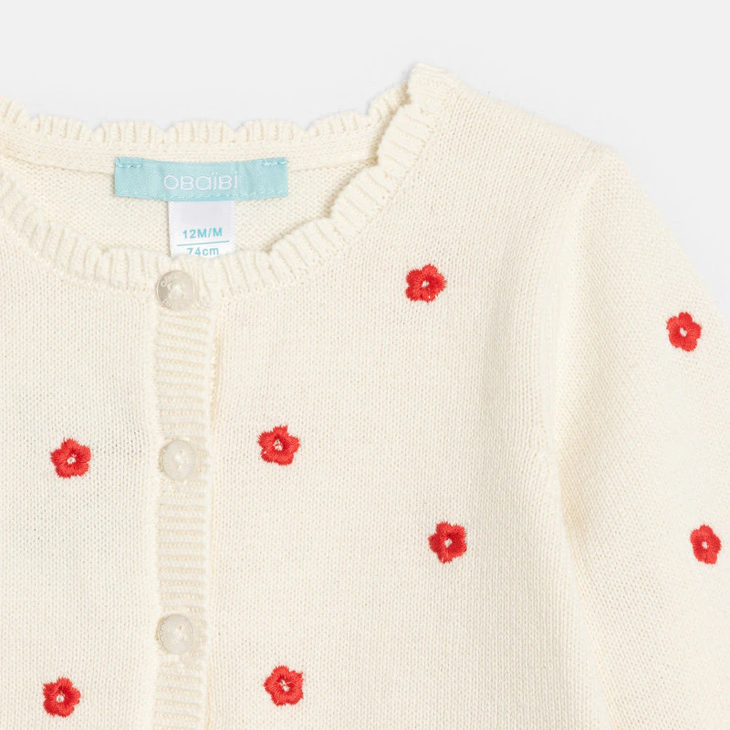 Кардиган из вязаного трикотажа с вышитыми цветами белого цвета для новорожденной
