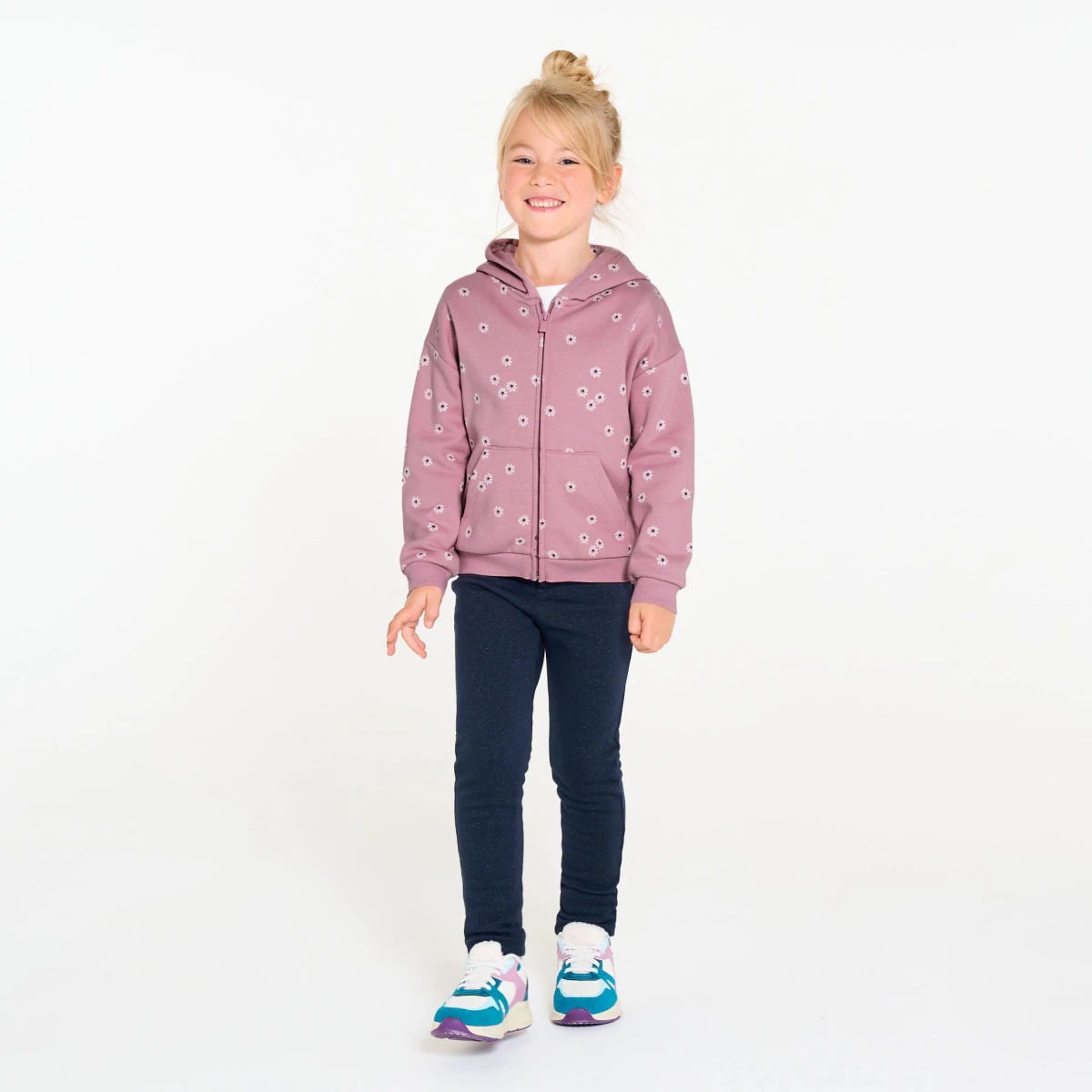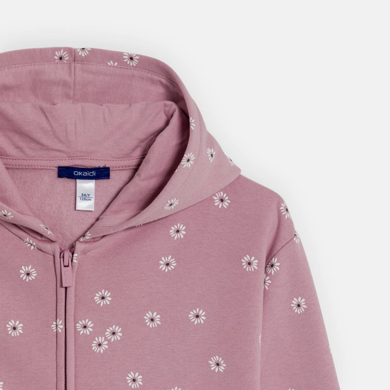 описание В этом сезоне толстовки украшены узором в мелкий цветочек! Девочки могут носить их все время и с чем угодно! Мягкий мольтон. Принт по всей поверхности. Капюшон с подкладкой из джерси. Застежка-молния. 2 кармана-кенгуру. Длинные рукава. Прямой низ. Однотонный край в рубчик.