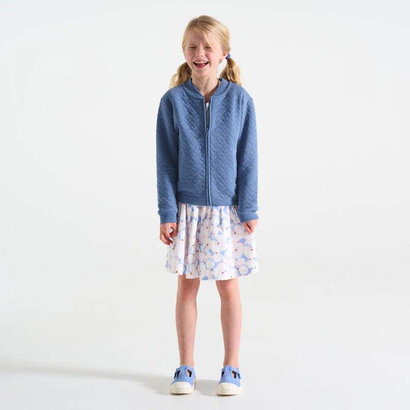 Уютная нежность и университетский стиль. Этот стеганый свитшот украшен сердечками по всей поверхности: девочкам это нравится! Круглый ворот в рубчик. Застежка на молнию спереди. 2 кармана спереди. Длинные рукава, манжеты в рубчик. Прямой низ. Прошивка в тон.