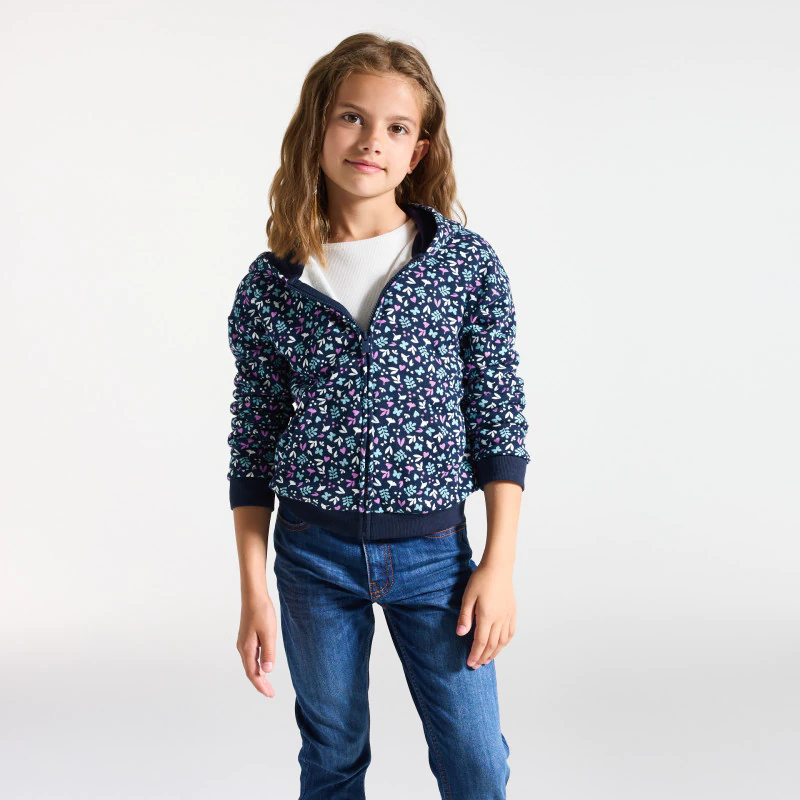 Свитшот с капюшоном и принтом синего цвета для девочки