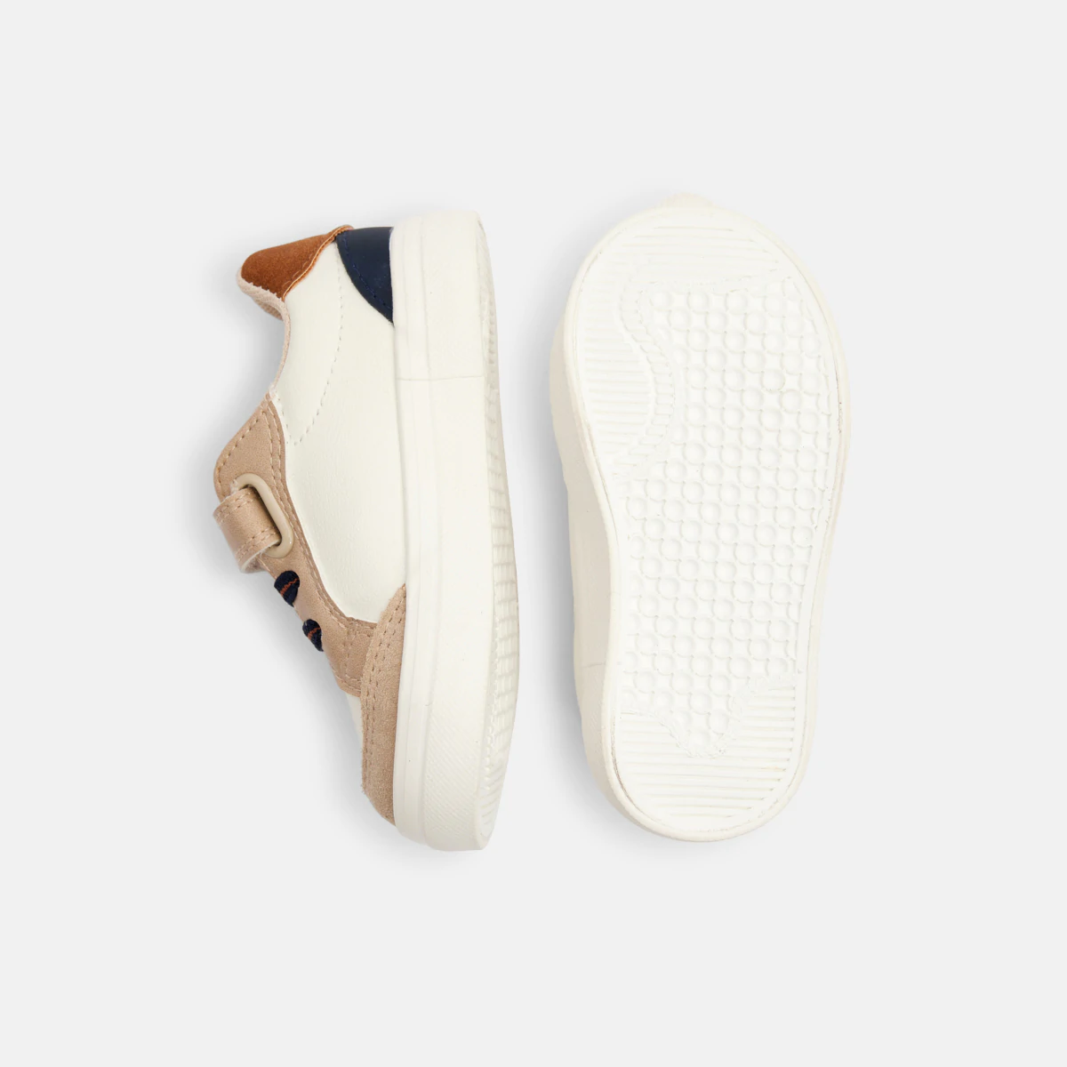 Низкие кожаные кроссовки бежевого цвета для мальчика ясельного возраста