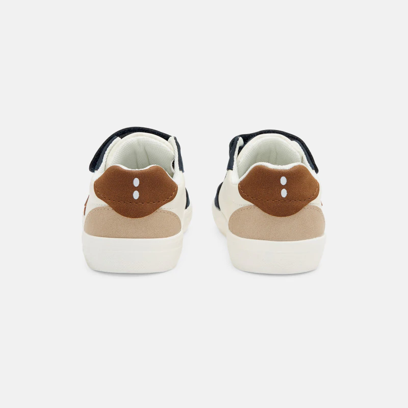 Эти кроссовки для активных малышей обеспечат стиль и комфорт на целый день. Разноцветные вставки из разных материалов и элемент из спилка спереди для защиты ноги от ударов. Удобная застежка-липучка и эластичные шнурки, чтобы ребенок обувался самостоятельно.