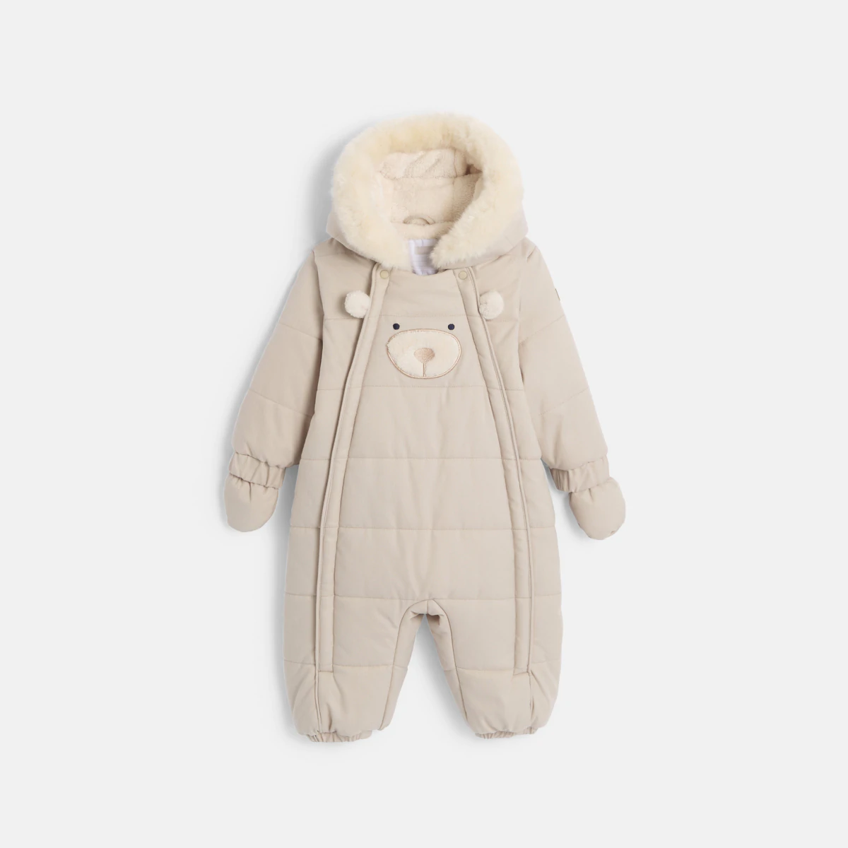 Теплый детский комбинезон с подкладкой бежевого цвета унисекс для новорожденного