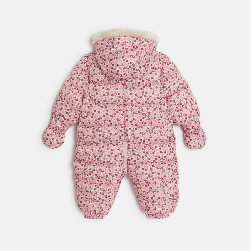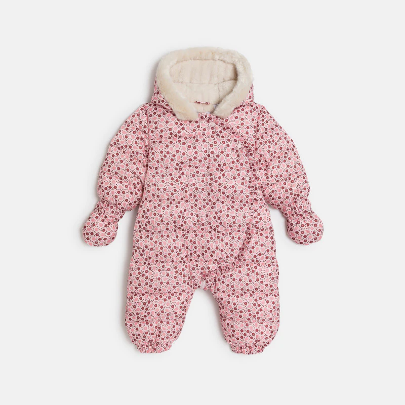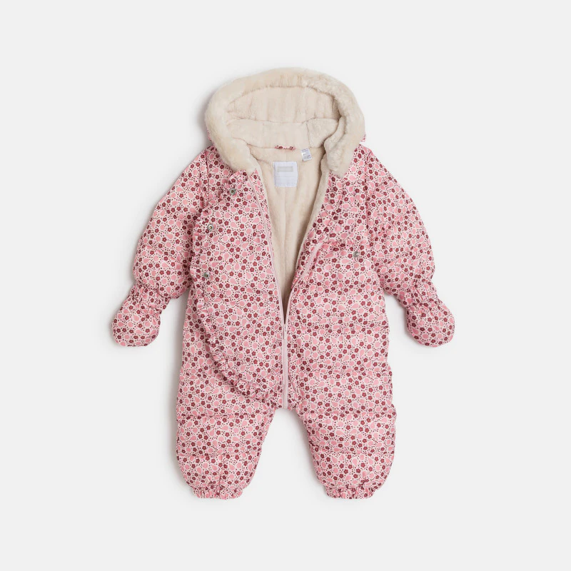 Теплый комбинезон на меховой подкладке розового цвета с фруктами для новорожденной