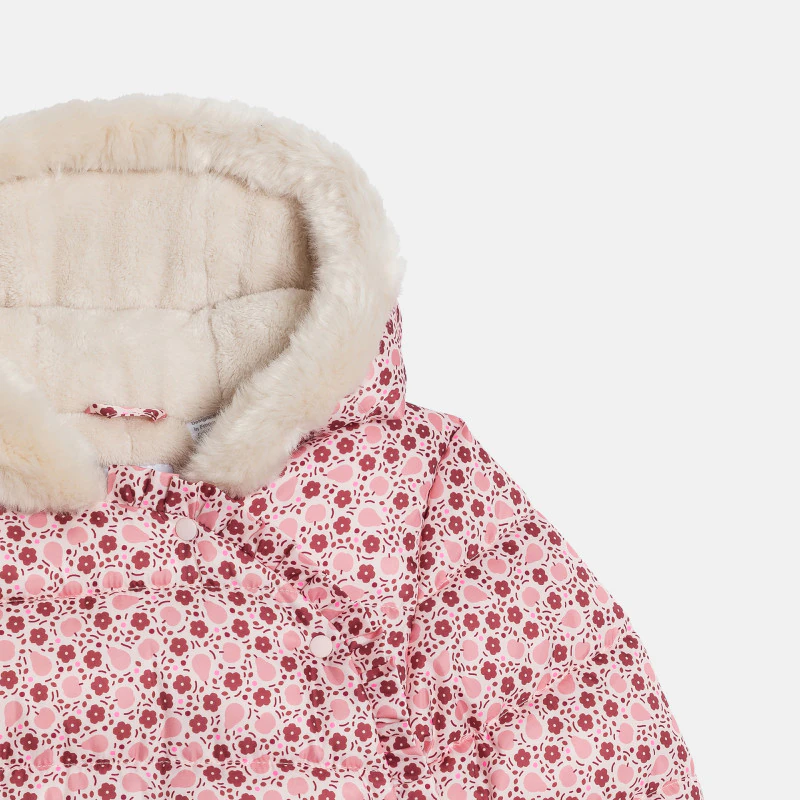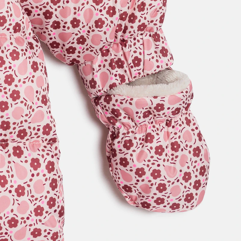 С этим мягким комбинезоном ваша малышка будет окружена нежностью и теплом с первых дней после выписки. Вам понравится его уютный крой, позволяющий одеть ребенка без лишних усилий. Запах с застежкой на молнию и кнопки обеспечивает защиту от сквозняков и холода. Встроенные варежки. Глубокий капюшон. Принт, сочетающийся с коллекцией Obaïbi.